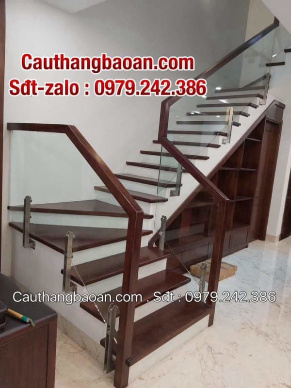 Cầu thang kính tay vịn gỗ là mẫu cầu thang kính hiện đại , được ưa chuộng hiện nay .