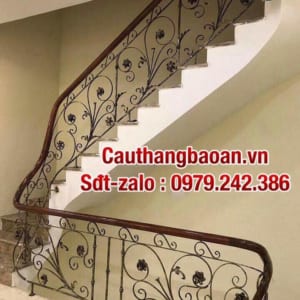 Cầu thang lan can sắt tay vịn gỗ, Cầu thang sắt nghệ thuật đẹp